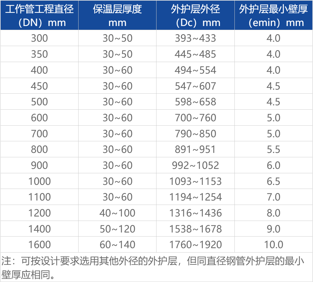 硬質(zhì)聚氨酯噴涂聚乙烯纏繞預(yù)制直埋保溫管由輸送介質(zhì)的工作鋼管(芯管)、聚氨酯硬質(zhì)泡沫塑料保溫層及聚乙烯外護(hù)層組成。保溫層厚度和外護(hù)層厚度在生產(chǎn)時(shí)可以根據(jù)需要在一定范圍內(nèi)任意調(diào)整。